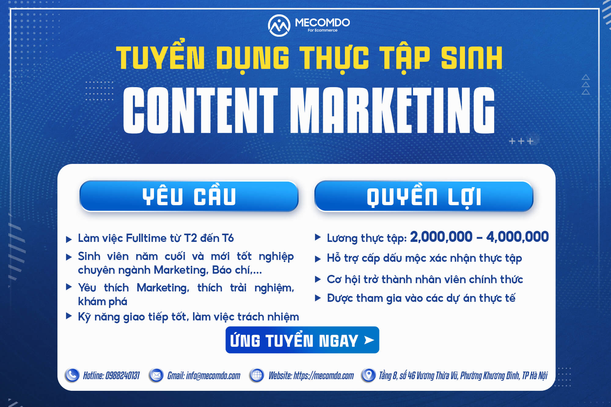 Hy vọng Mecomdo có cơ hội làm việc cùng các bạn trẻ có Đam mê – Thái độ cầu tiến trong học tập và công việc.